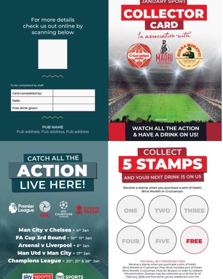 Watch the sport, enjoy the atmosphere, collect your stamps – and your next drink’s on us.